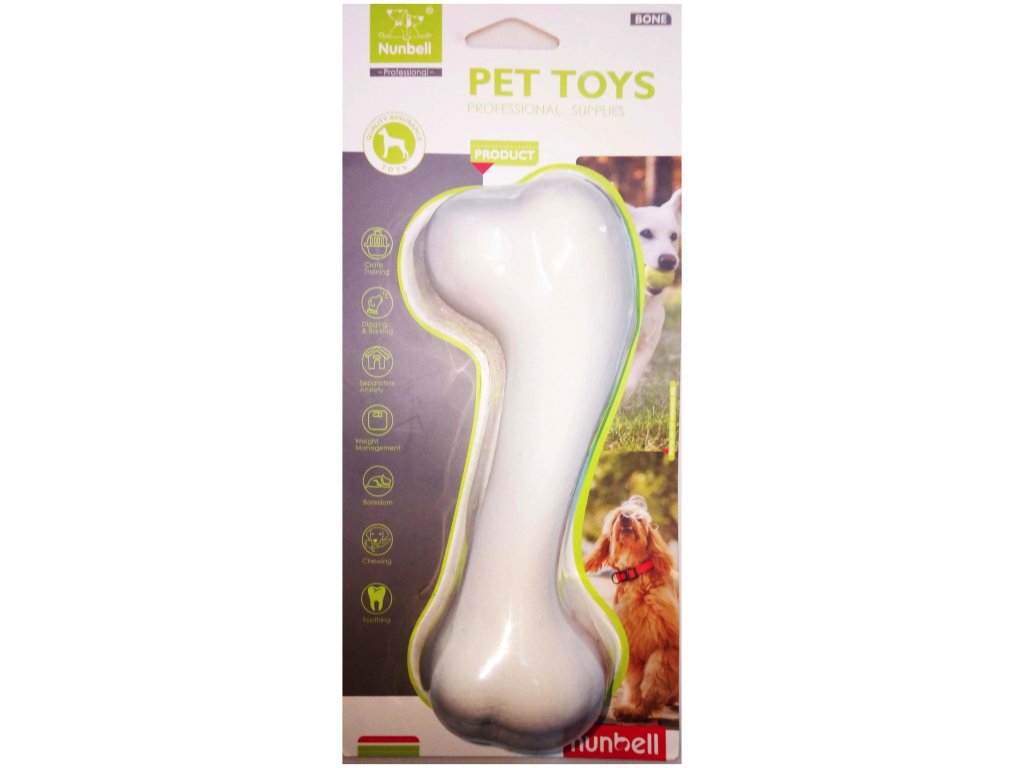 Žuvacia hračka v tvare kosti je vyrobená z netoxického TPR, je odolné voči hryzeniu.