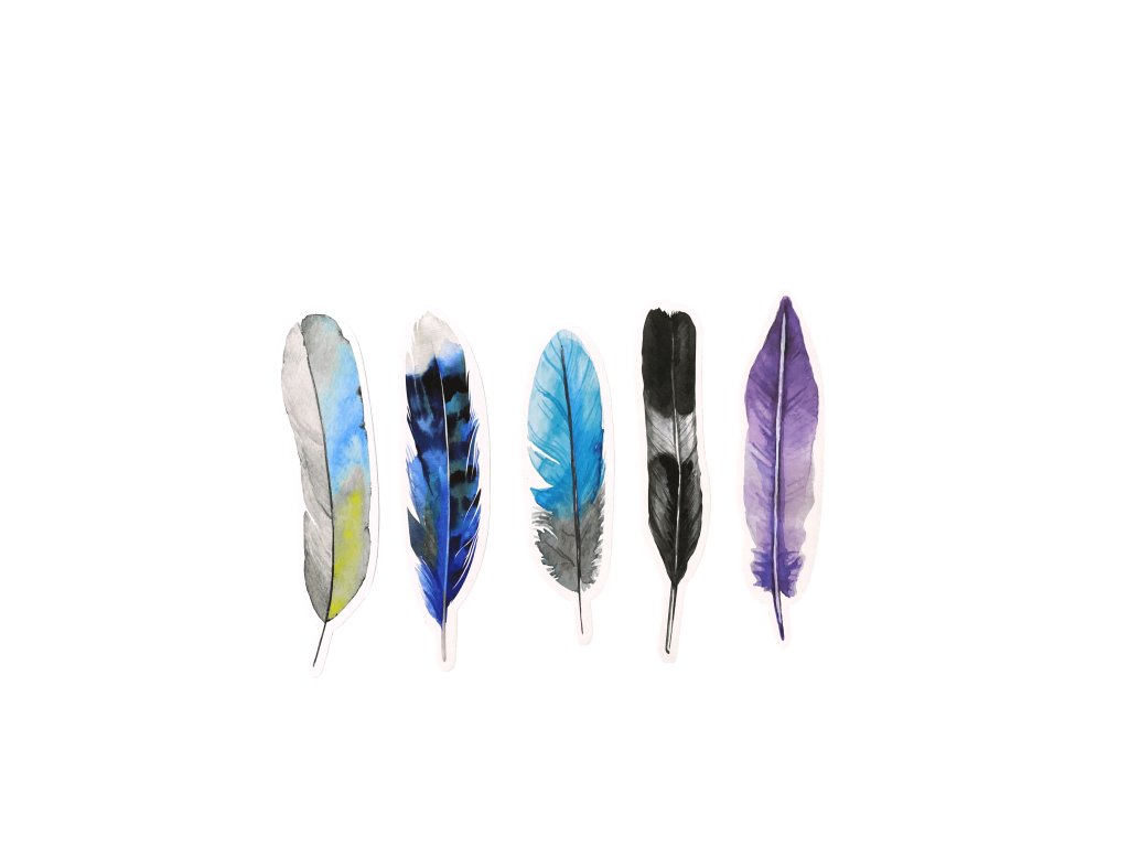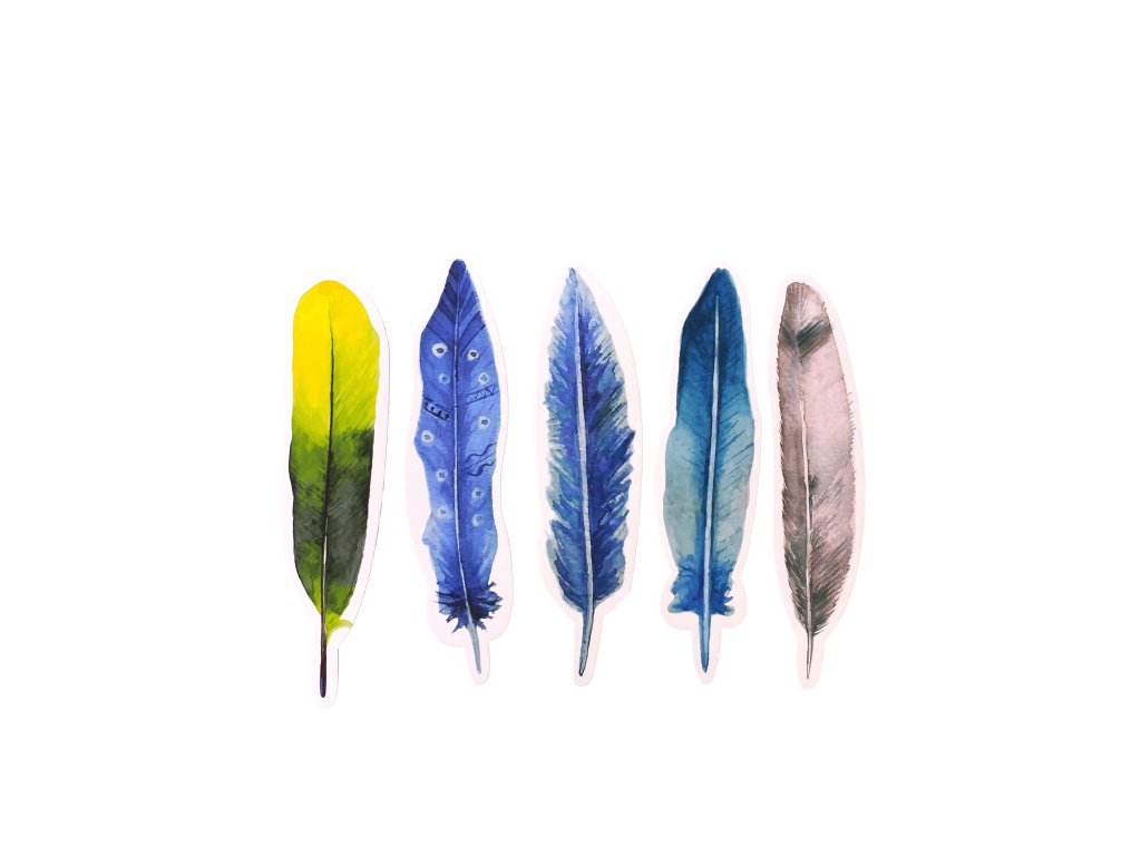 Záložky do knihy v motíve pierok o veľkosti 15 x 4 cm z kvalitného tvrdého papiera.